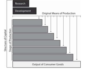 In retrospect I think that the “original means of production” should be shown as facilitating all components of the capital structure, both stages of production and R&D.