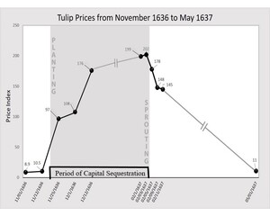 Furthermore, the first place tulip promissory note prices collapsed was in the city of Haarlem, where the temperature profile is most suitable for early sprouting. Based on the evidence, we concluded that “the odds that the timings of the Tulipmania boom and bust occurred purely by chance, rather than because the bulbs were sequestered beneath the ground, is below 1.4 per cent” (McClure and Thomas 2017, 140).